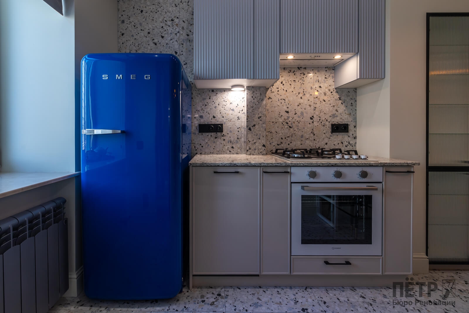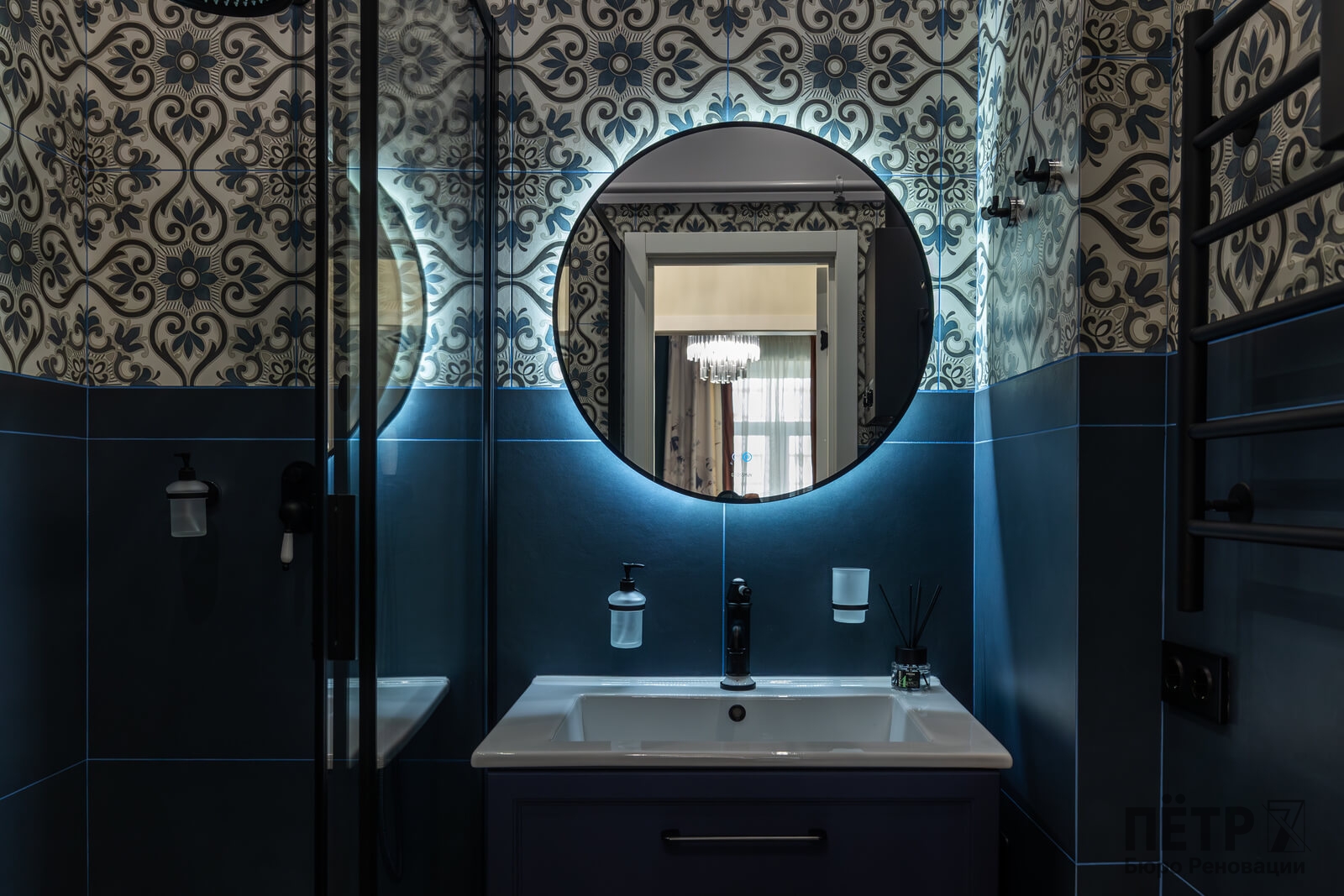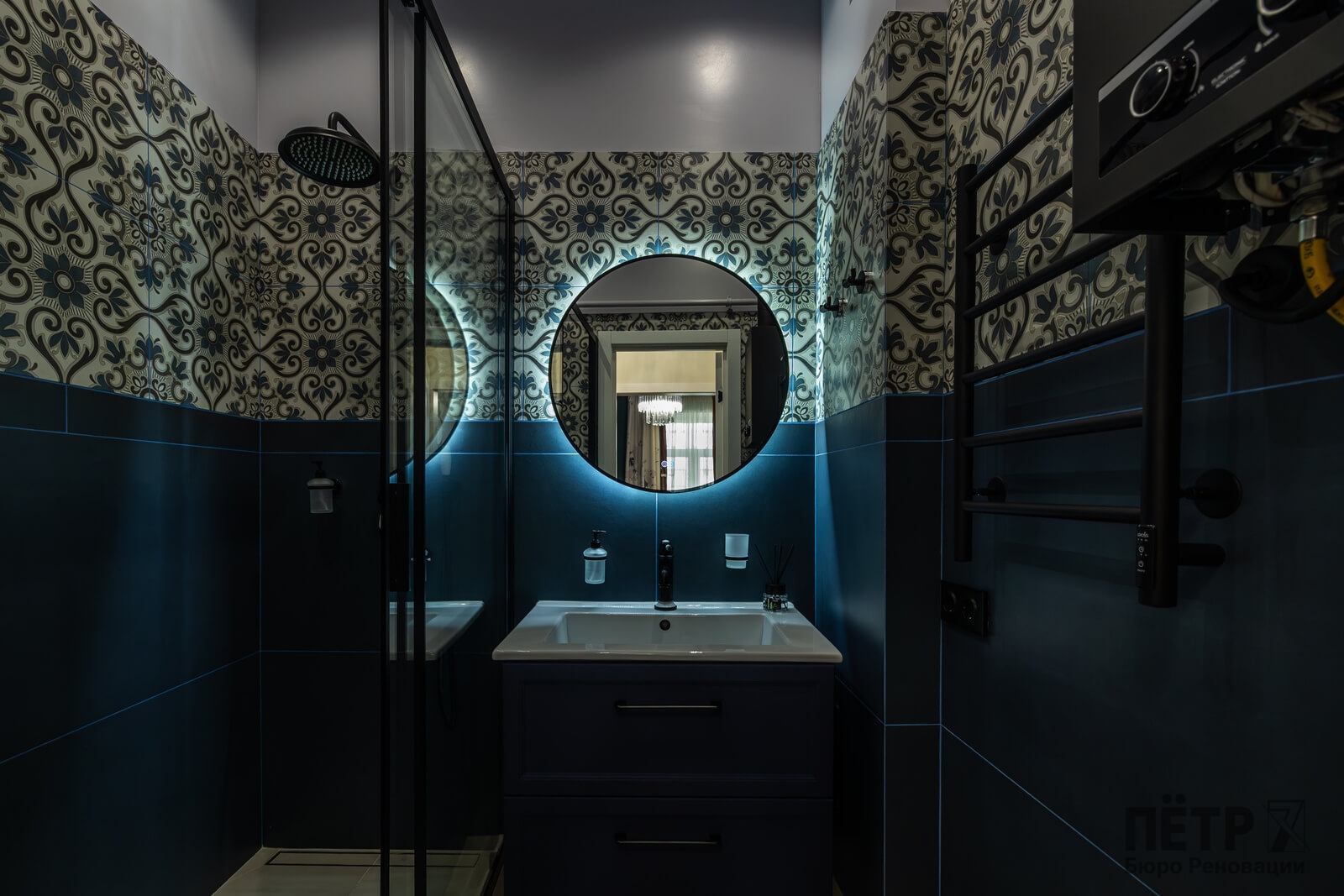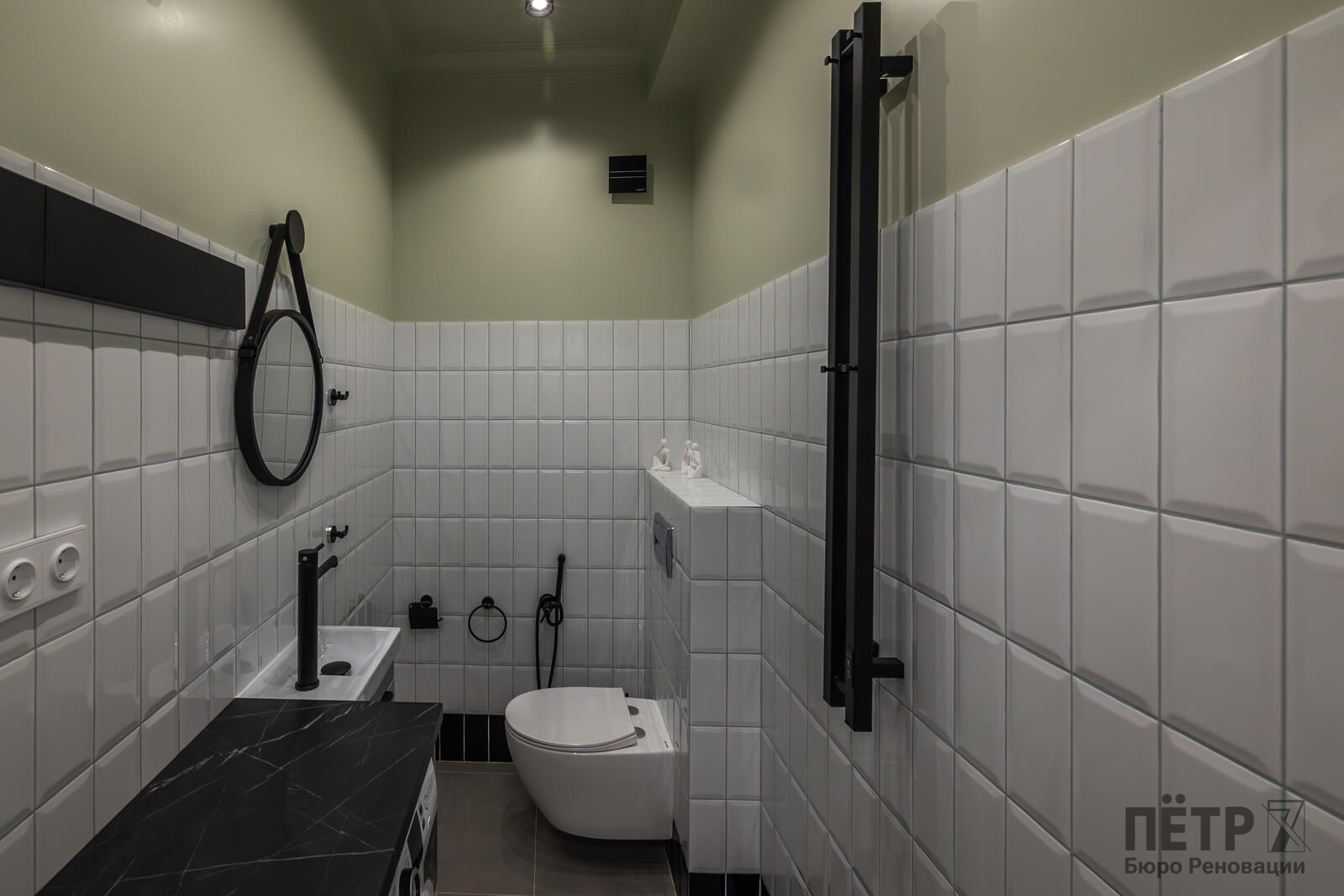 Основной задачей реновации было обновить квартиру, сохранив атмосферу сталинской архитектуры. Пространство перепланировали под современный формат: кухня-гостиная, отдельная спальня и раздельные санузлы. В одном из санузлов разместили компактную прачечную зону.