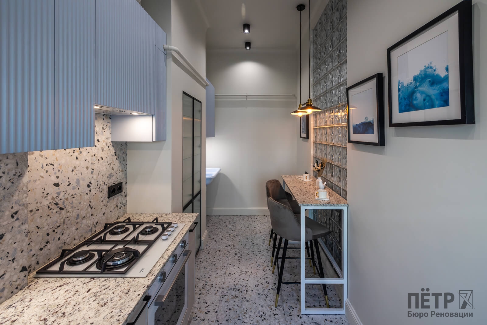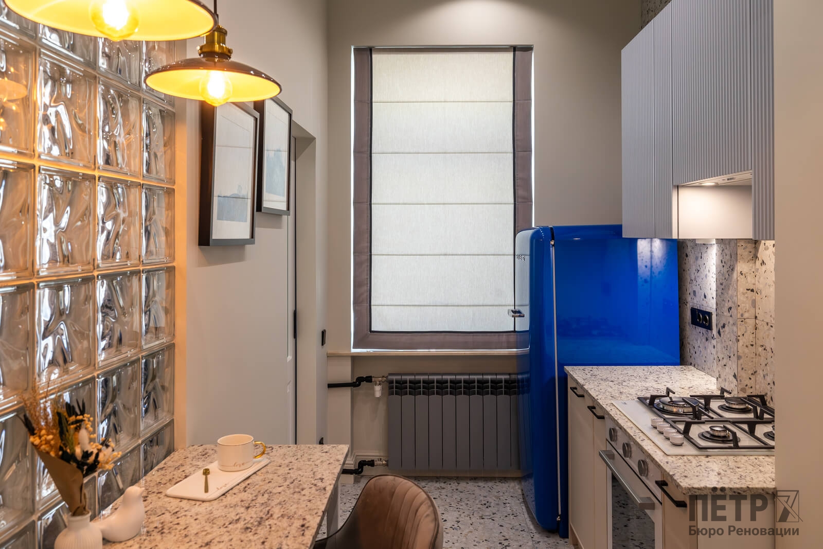 Проект реализован в сталинском доме в центральной части города, рядом с двумя IT-парками и деловой инфраструктурой города. Район активно развивается, при этом историческая застройка здесь сохраняет характер старого города — массивные стены, высокие потолки и просторные оконные проёмы.