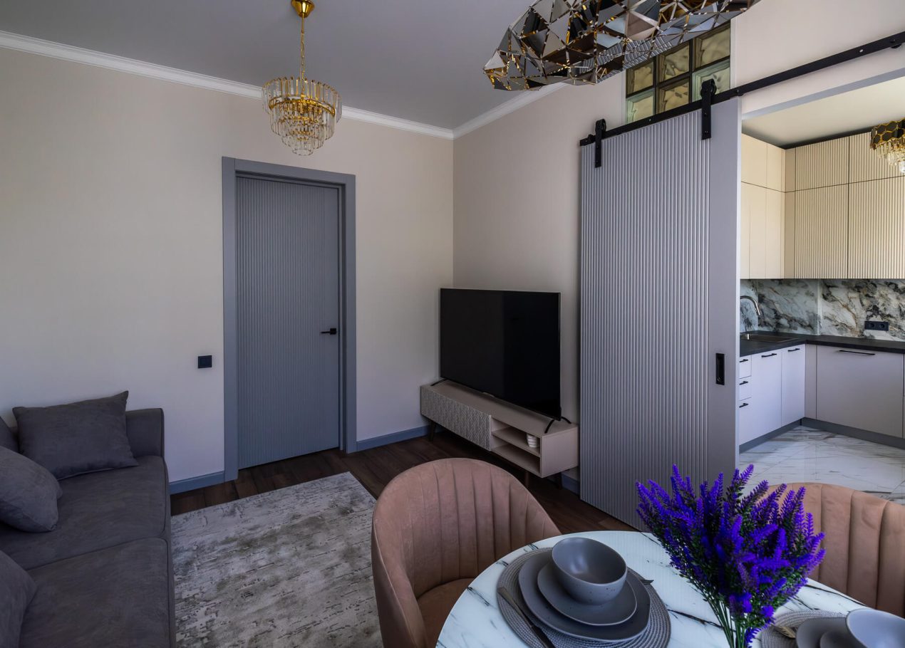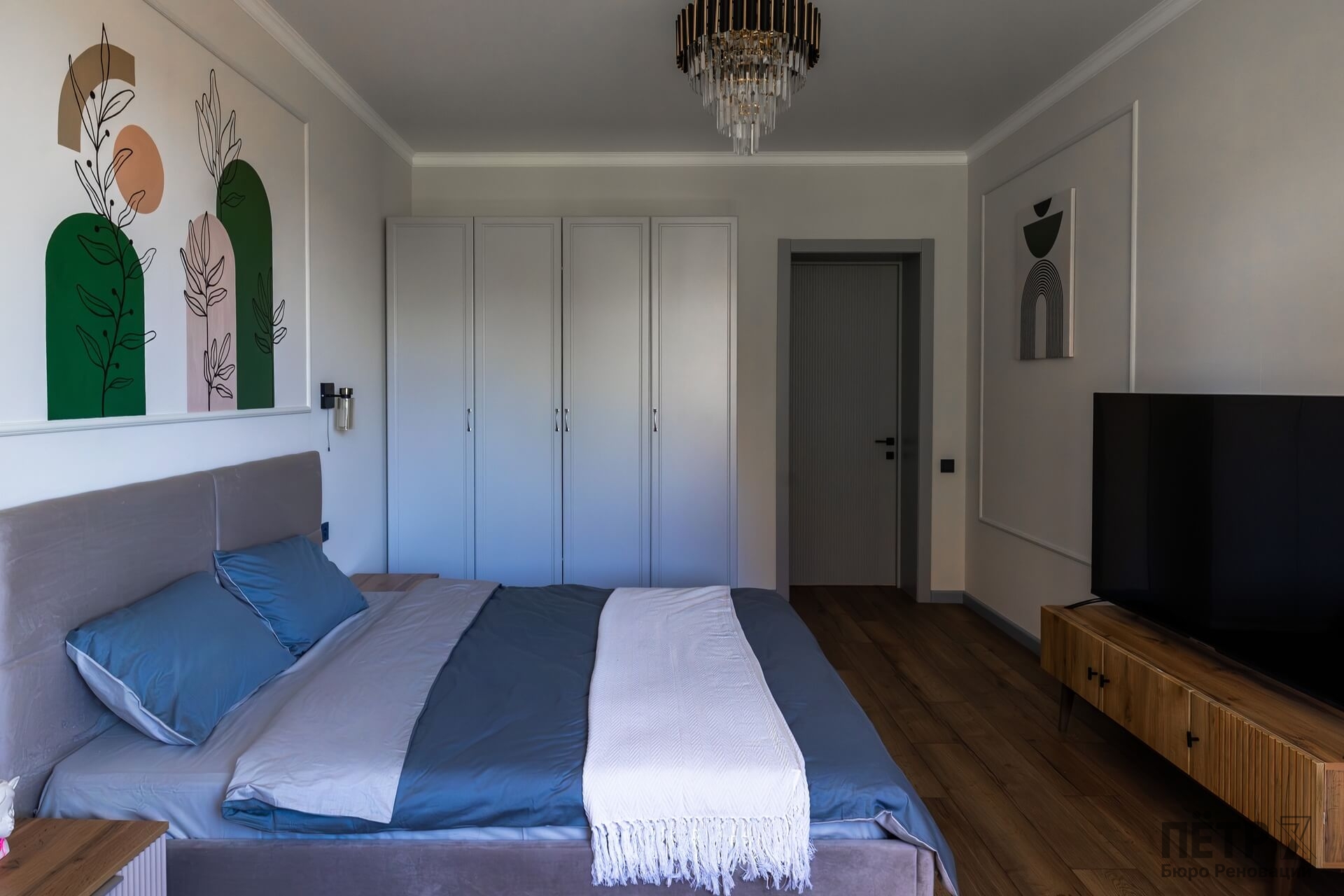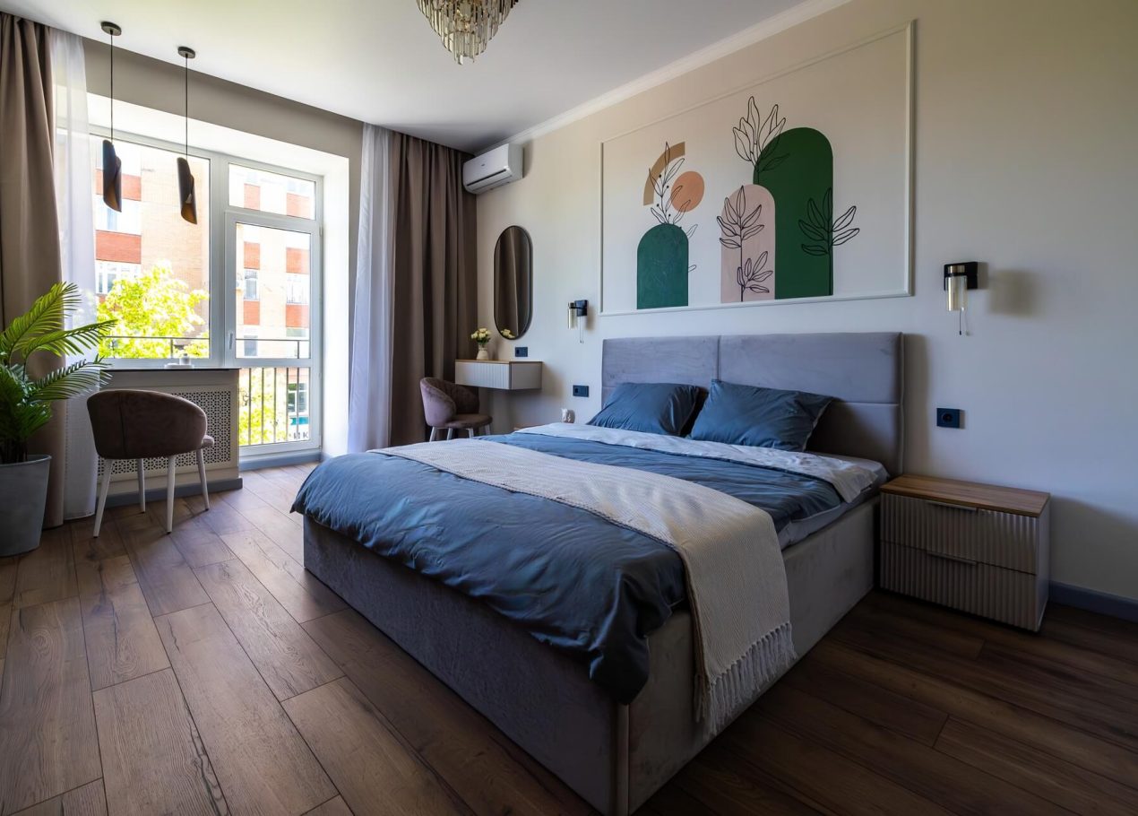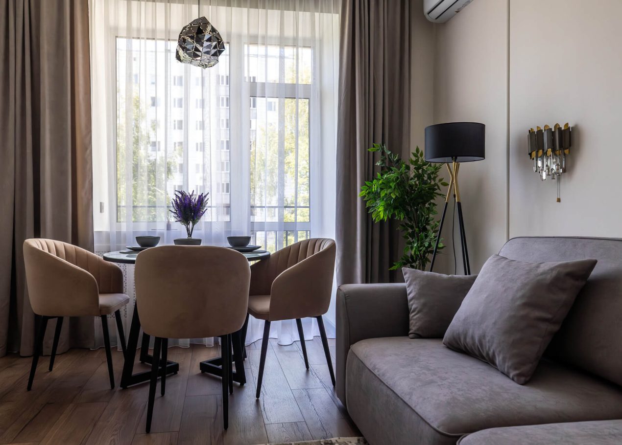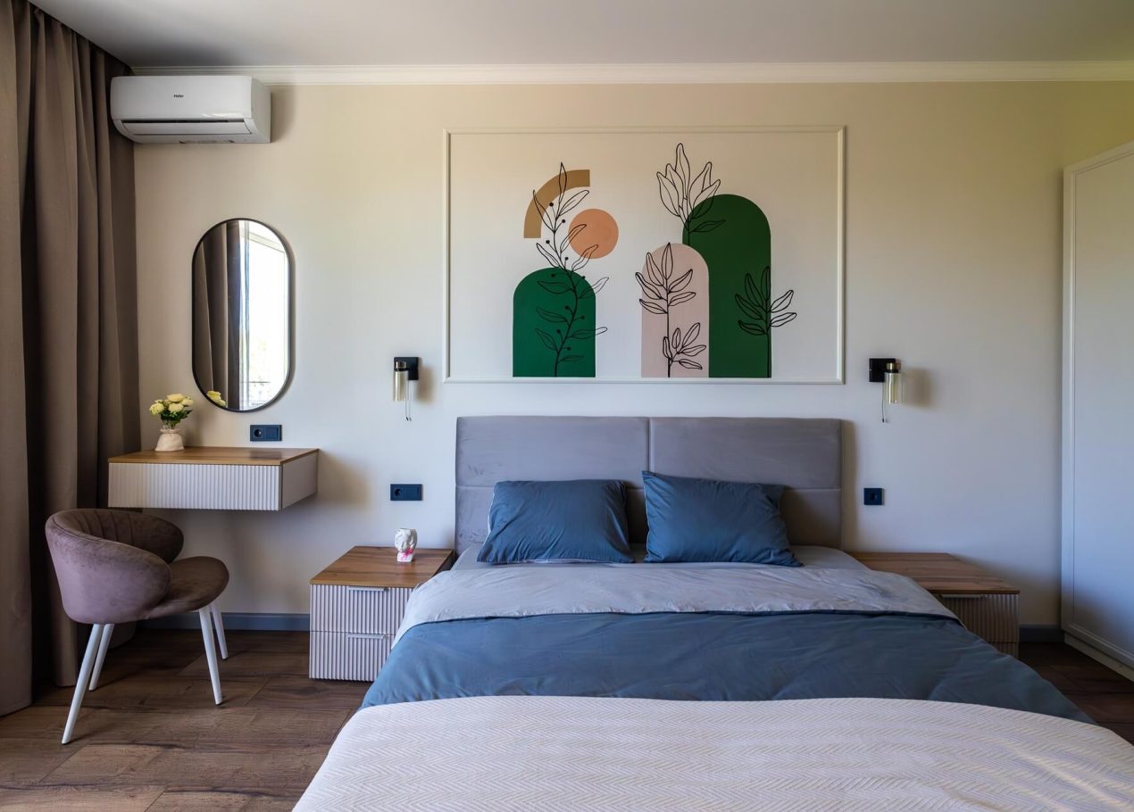 Планировку адаптировали под современный формат жизни: кухня-гостиная, отдельная спальня, раздельные санузлы и просторный холл. Дополнительными преимуществами квартиры стали два балкона, высокие потолки и видовые характеристики, которые удалось сохранить и подчеркнуть в обновлённом интерьере.