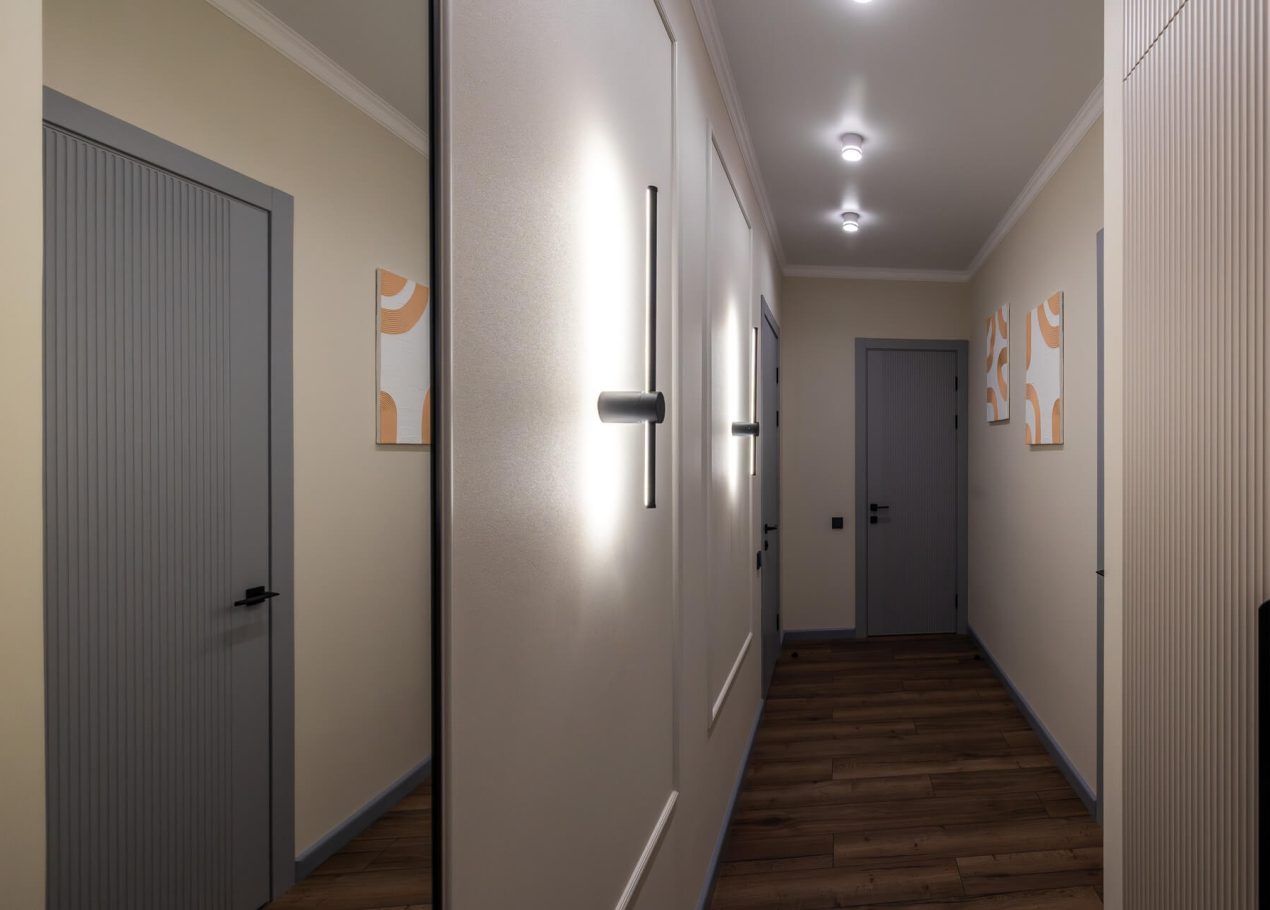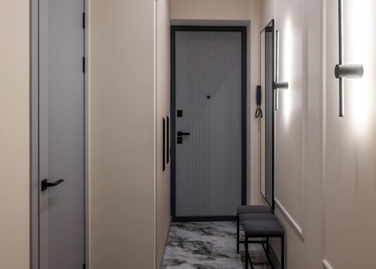 Проект реализован в сталинском доме напротив парка Горького. Дом расположен в центральной части города, в районе с исторической застройкой и развитой городской средой. Для сталинок этого периода характерны высокие потолки, массивные стены и просторные подъезды, что создаёт хорошую архитектурную основу для реновации.
