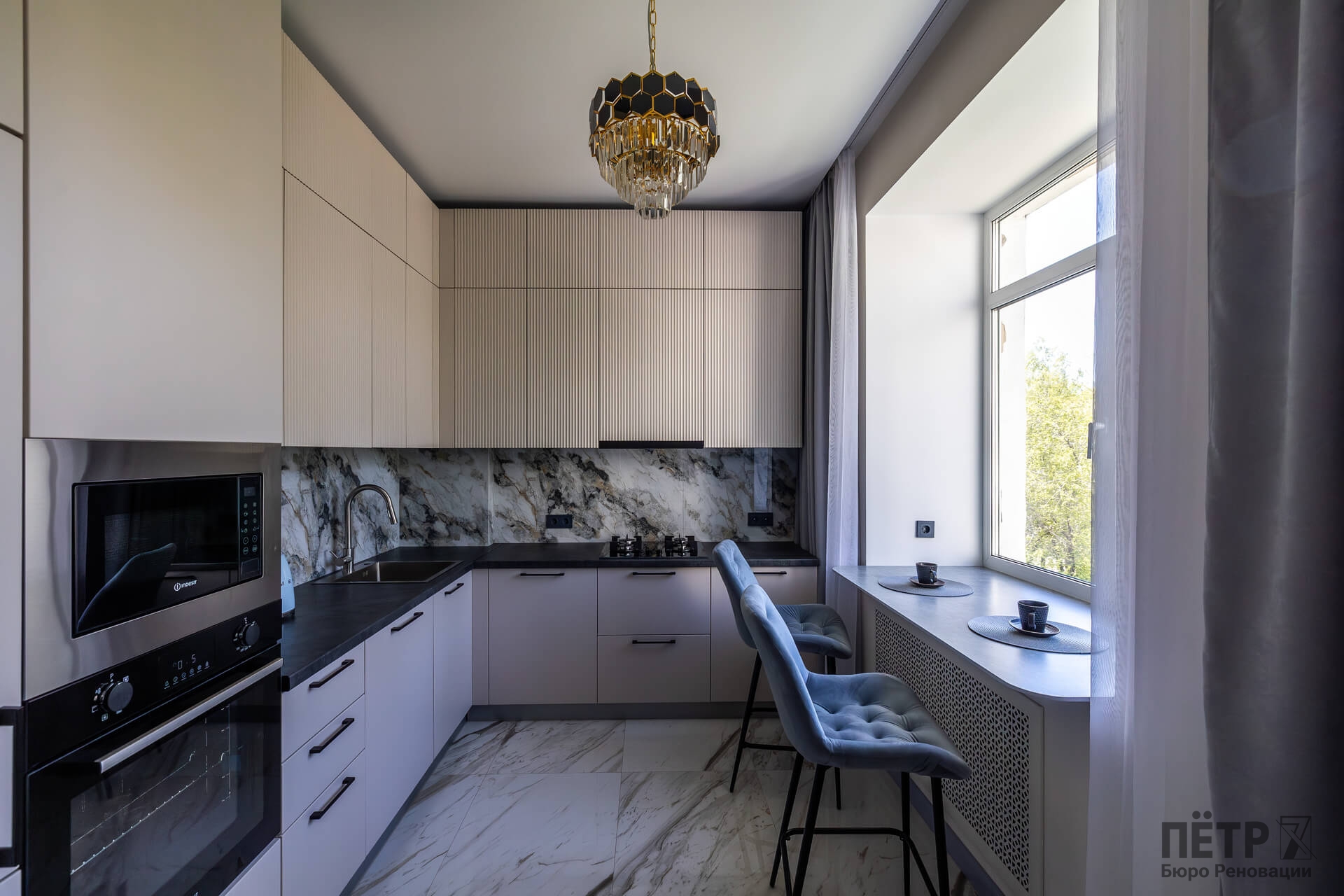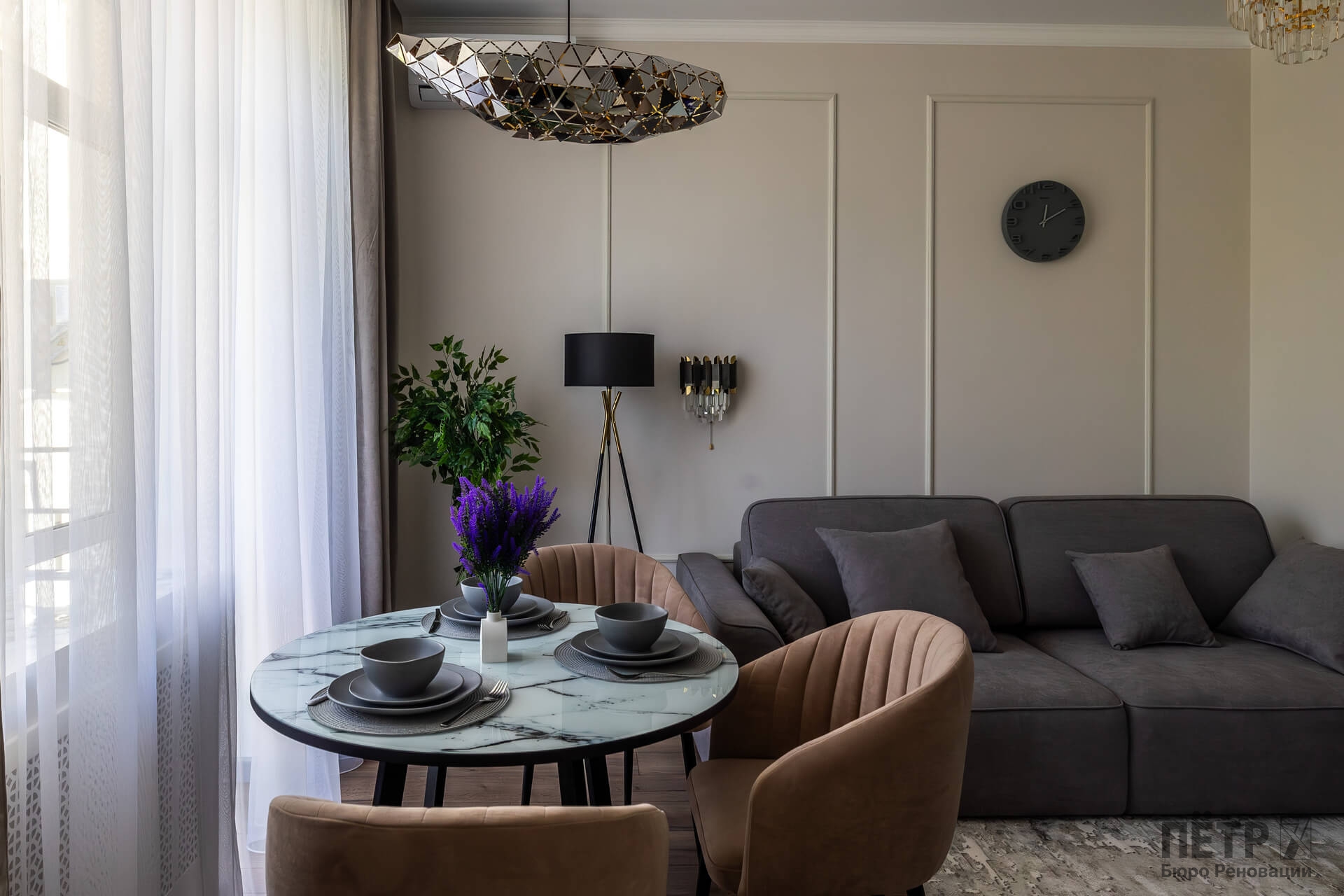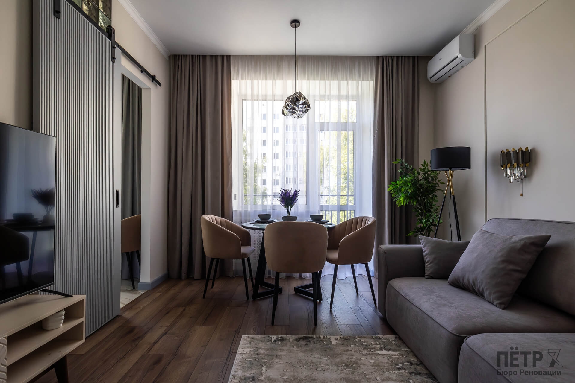 В результате реновации квартира получила новое качество пространства, сохранив архитектурный характер сталинского дома и атмосферу исторического района города.