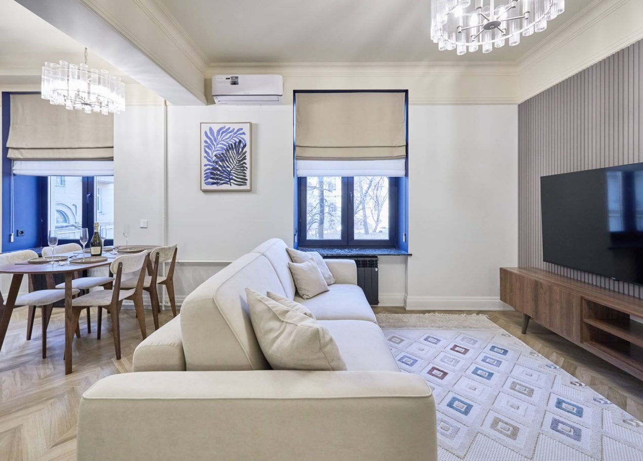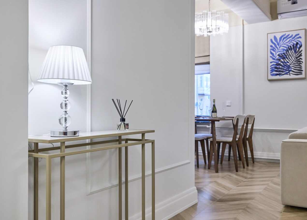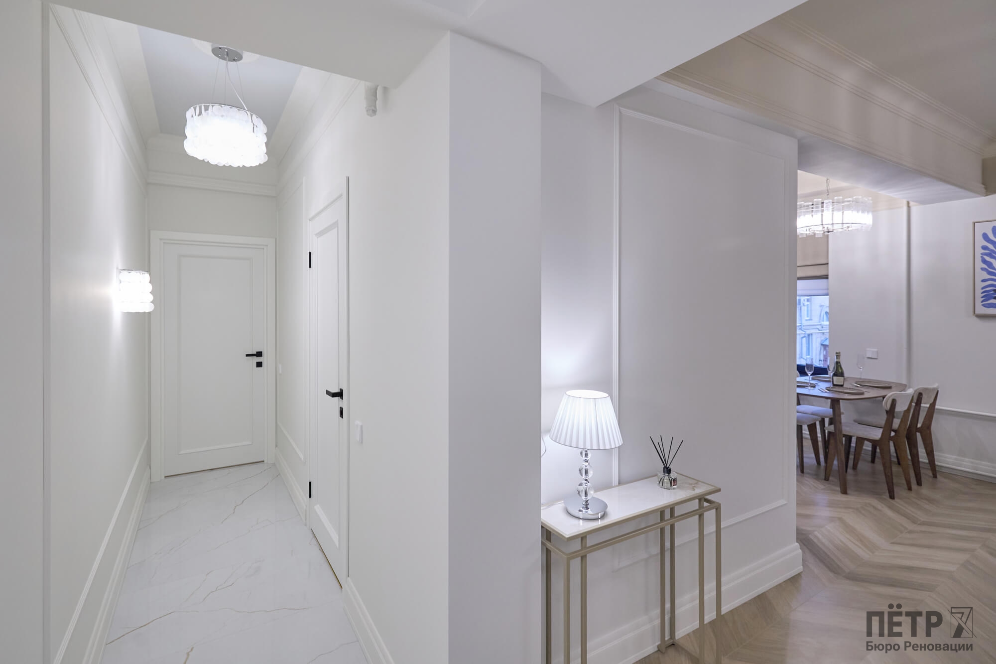 Основной задачей проекта стало сохранение архитектурной атмосферы исторического дома при полной технической реновации квартиры. Были заменены все инженерные коммуникации, обновлены окна и выполнена современная перепланировка пространства.