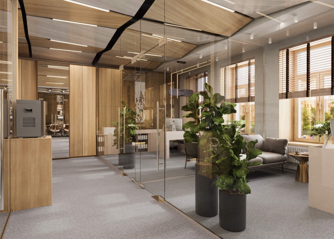 Особое внимание уделяется сохранению исторических элементов, включая старинные царские печи и оригинальные архитектурные детали, которые формируют характер здания. Все решения в проекте направлены на то, чтобы сохранить атмосферу исторического объекта и одновременно адаптировать его под современные требования к офисным пространствам.
