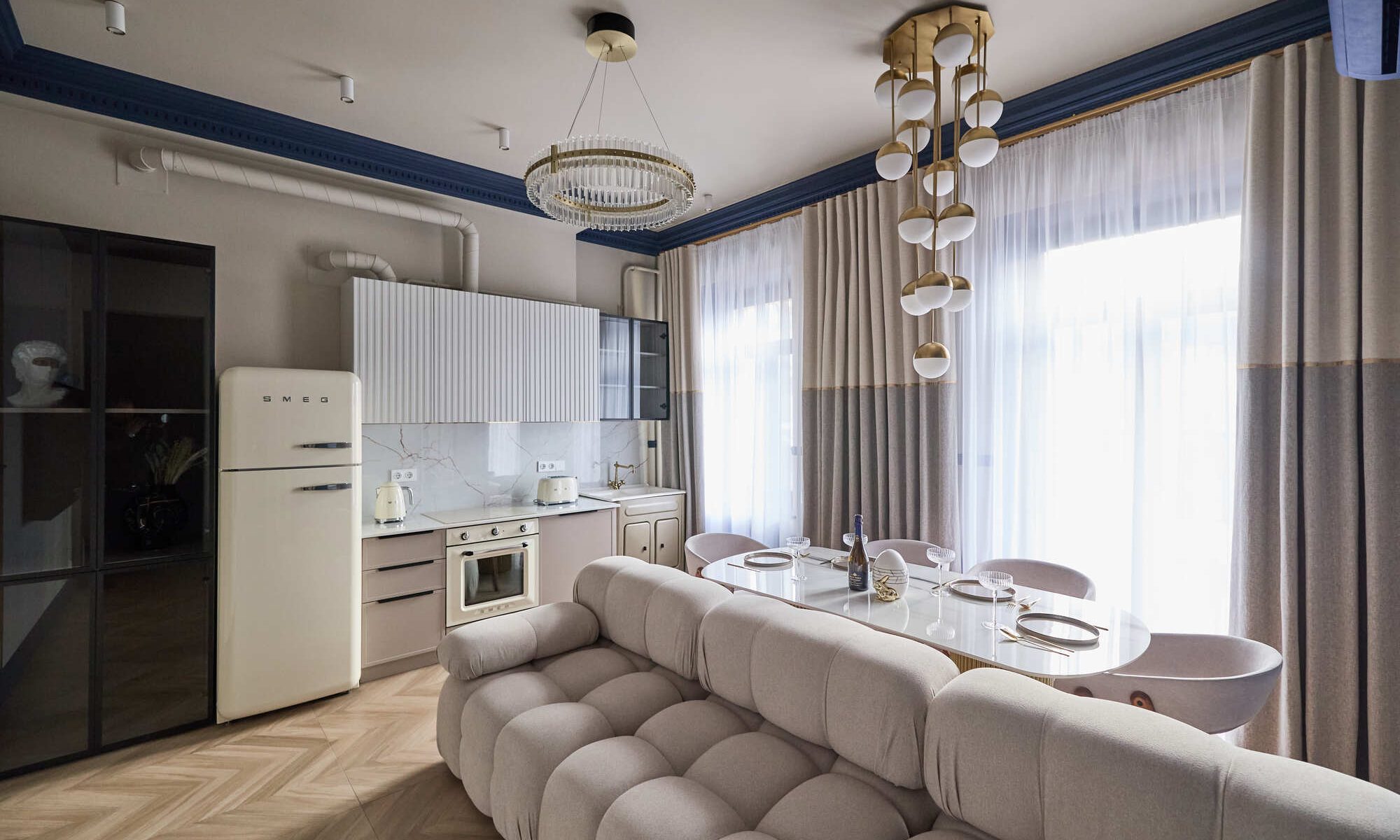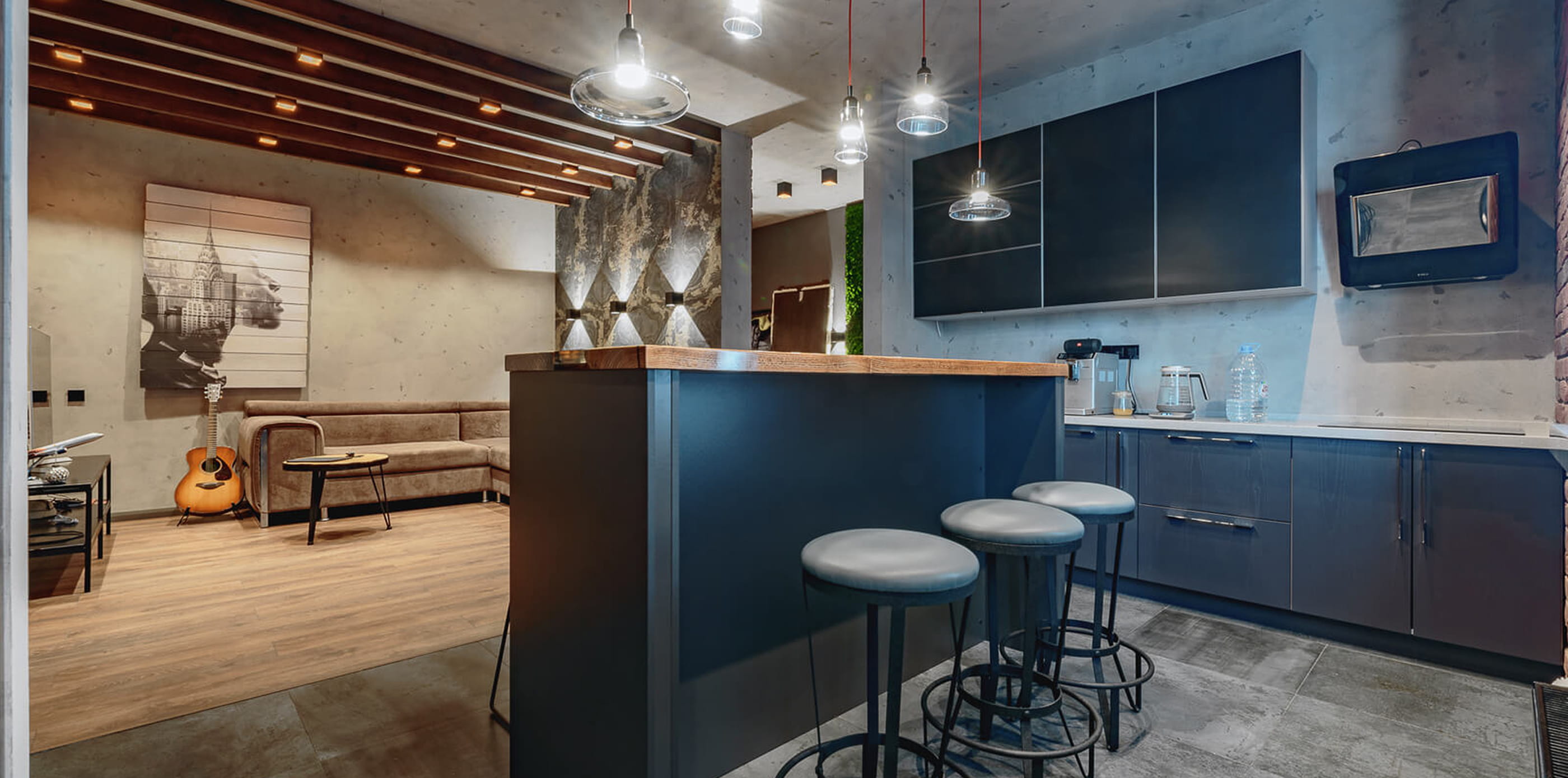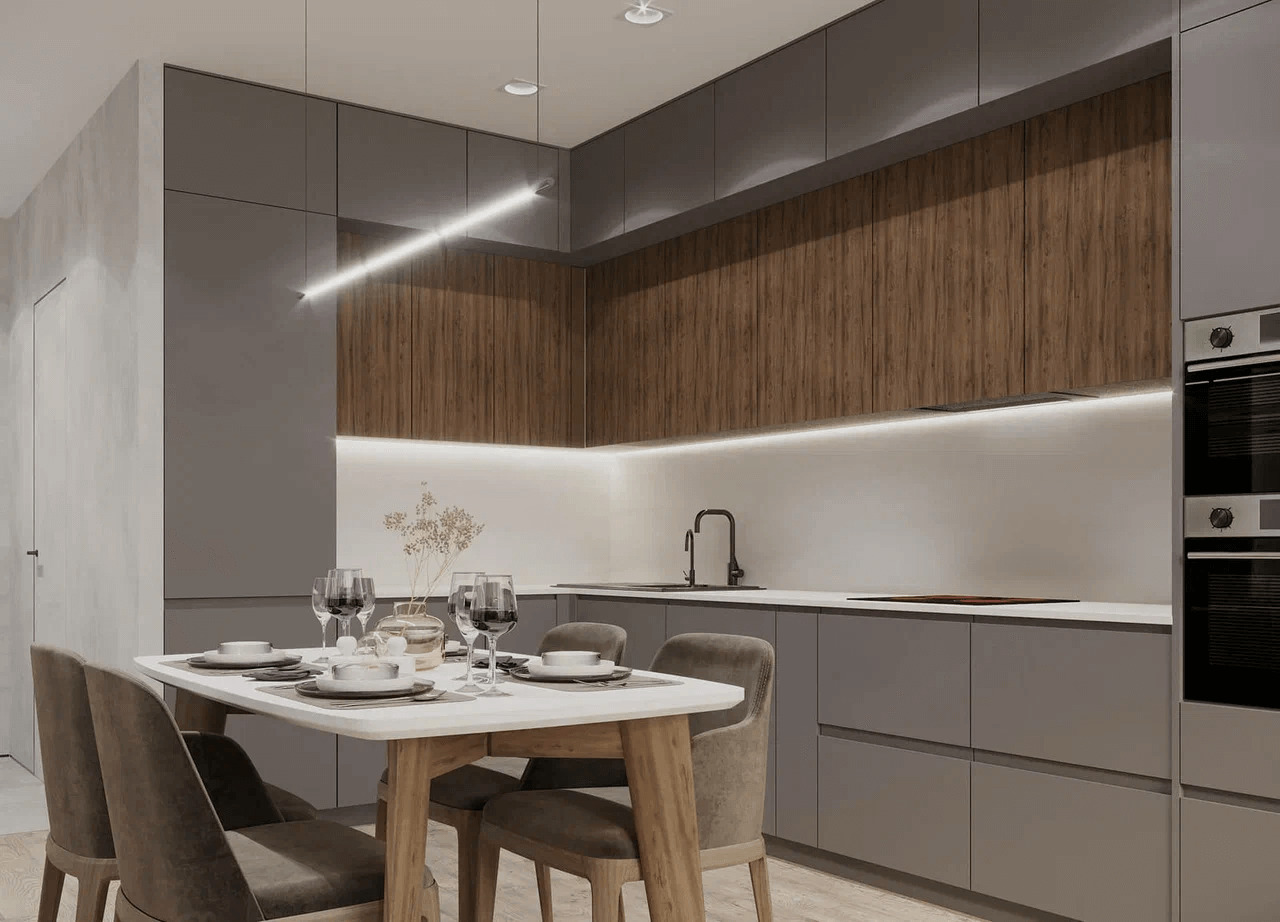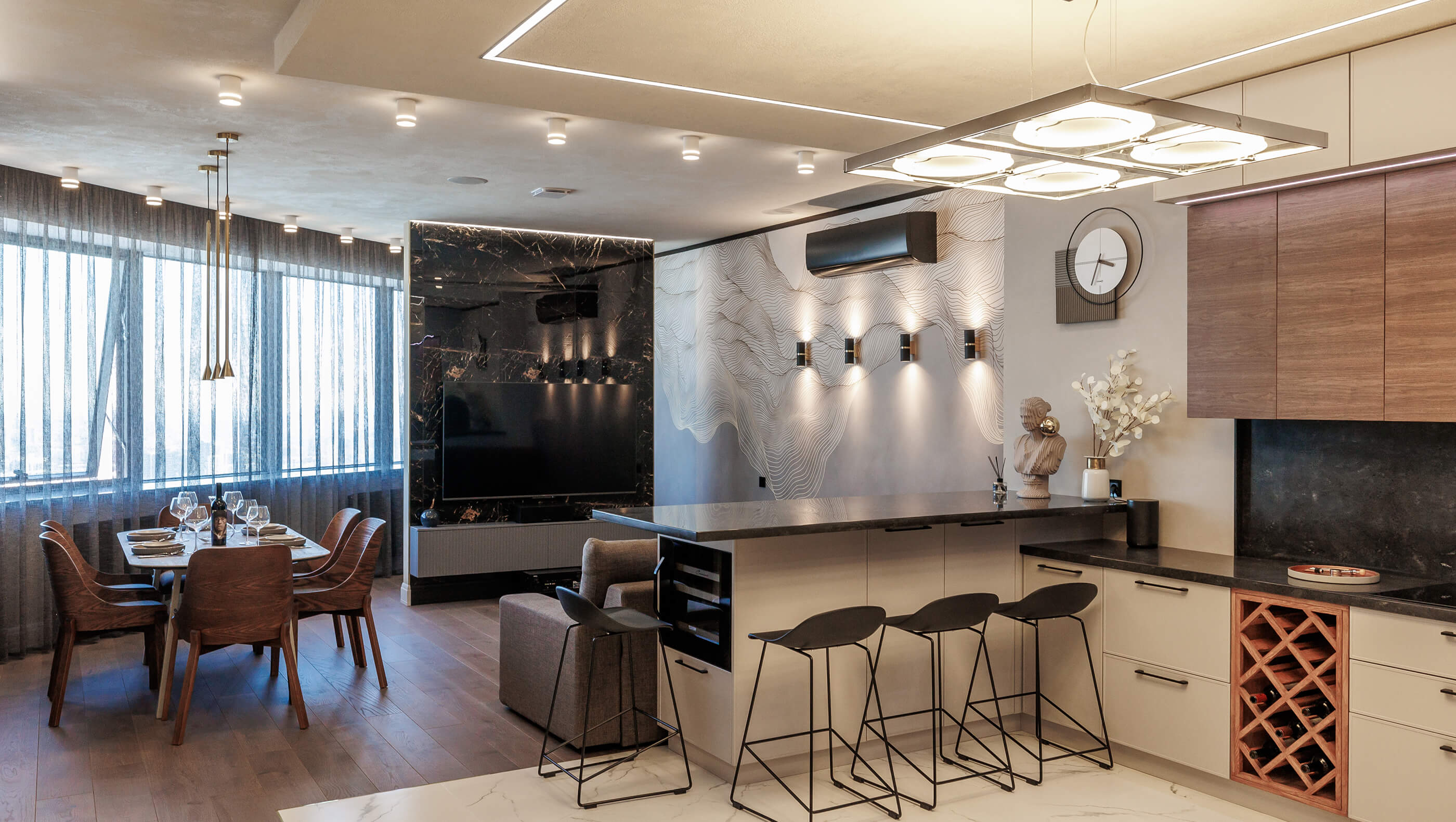 Собственные бригады и производство мебели. Не зависим от субподрядчиков, которые могут подвести. Полностью ведём объект от начала до конца. Все процессы выстроены за 18+ лет