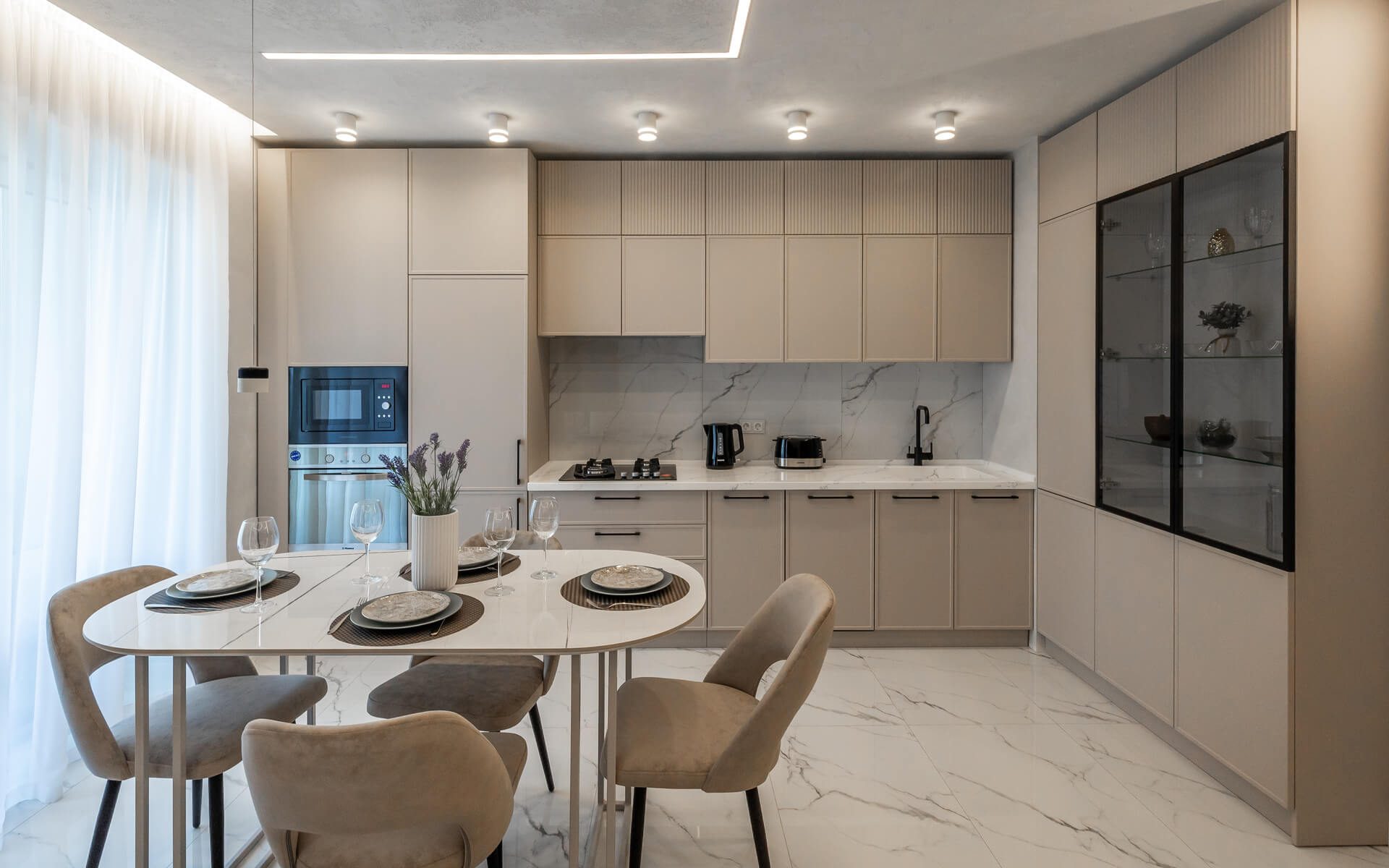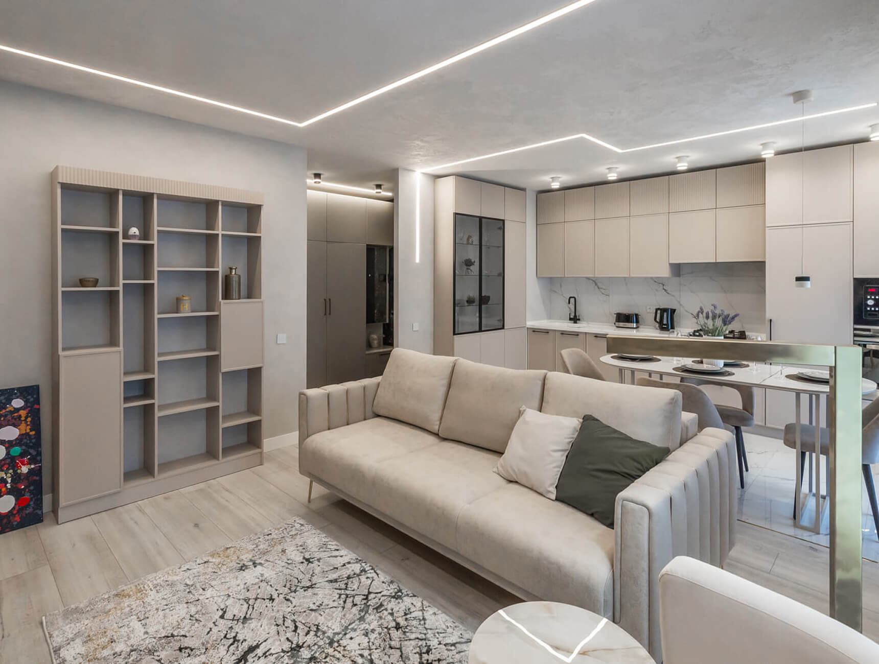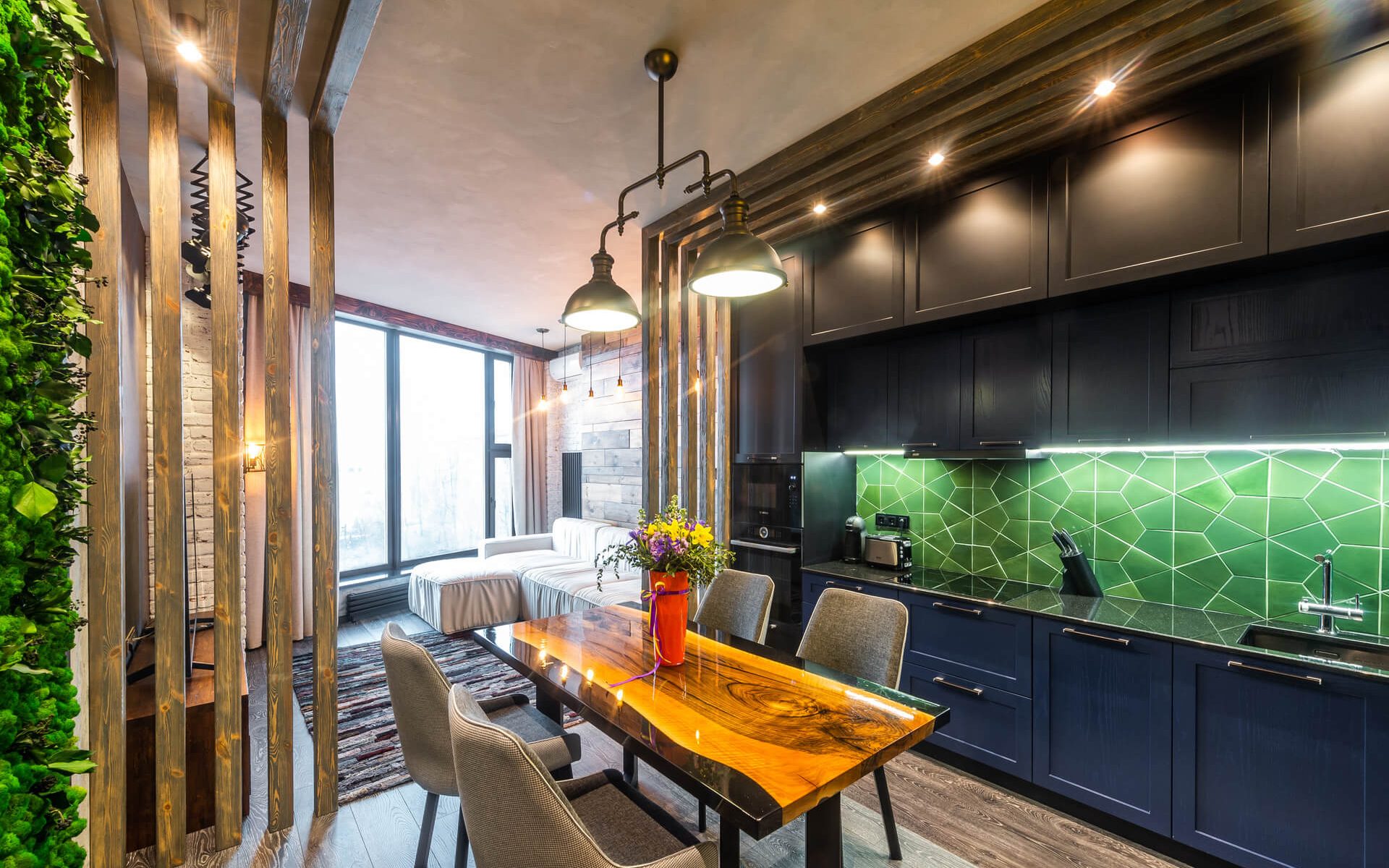 Собственные бригады и производство мебели. Не зависим от субподрядчиков, которые могут подвести. Полностью ведём объект от начала до конца. Все процессы выстроены за 18+ лет